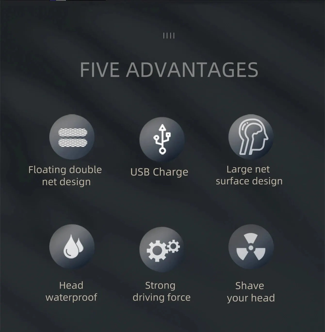 About This Product 7D floating heads for smooth, close, and flexible shaving Supports wet & dry use – ideal for bald head and beard grooming Rechargeable design with long-lasting battery Built-in LCD display shows power level and usage time Ergonomic grip for comfortable handling Perfect for daily shaving and travel-ready grooming