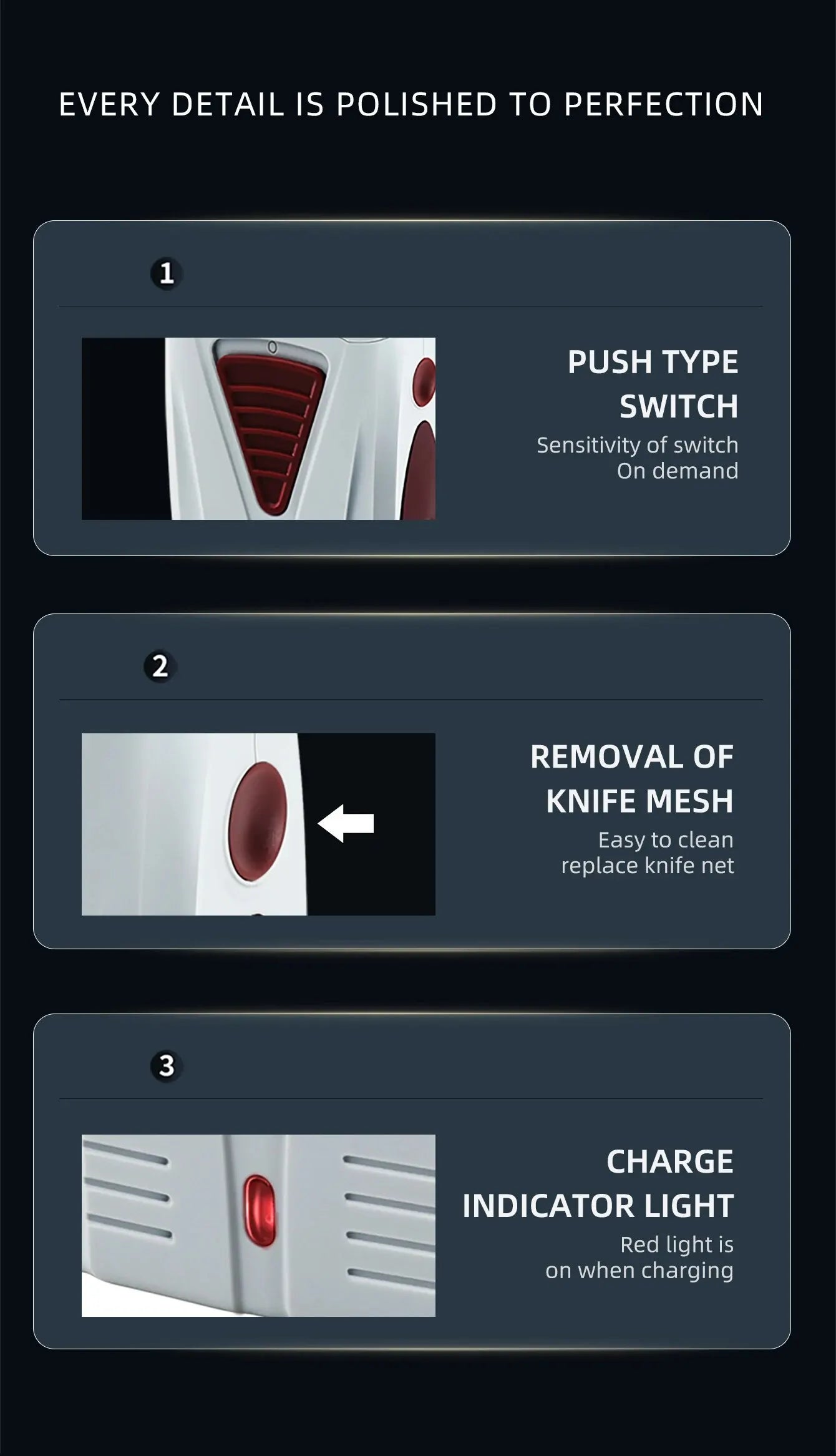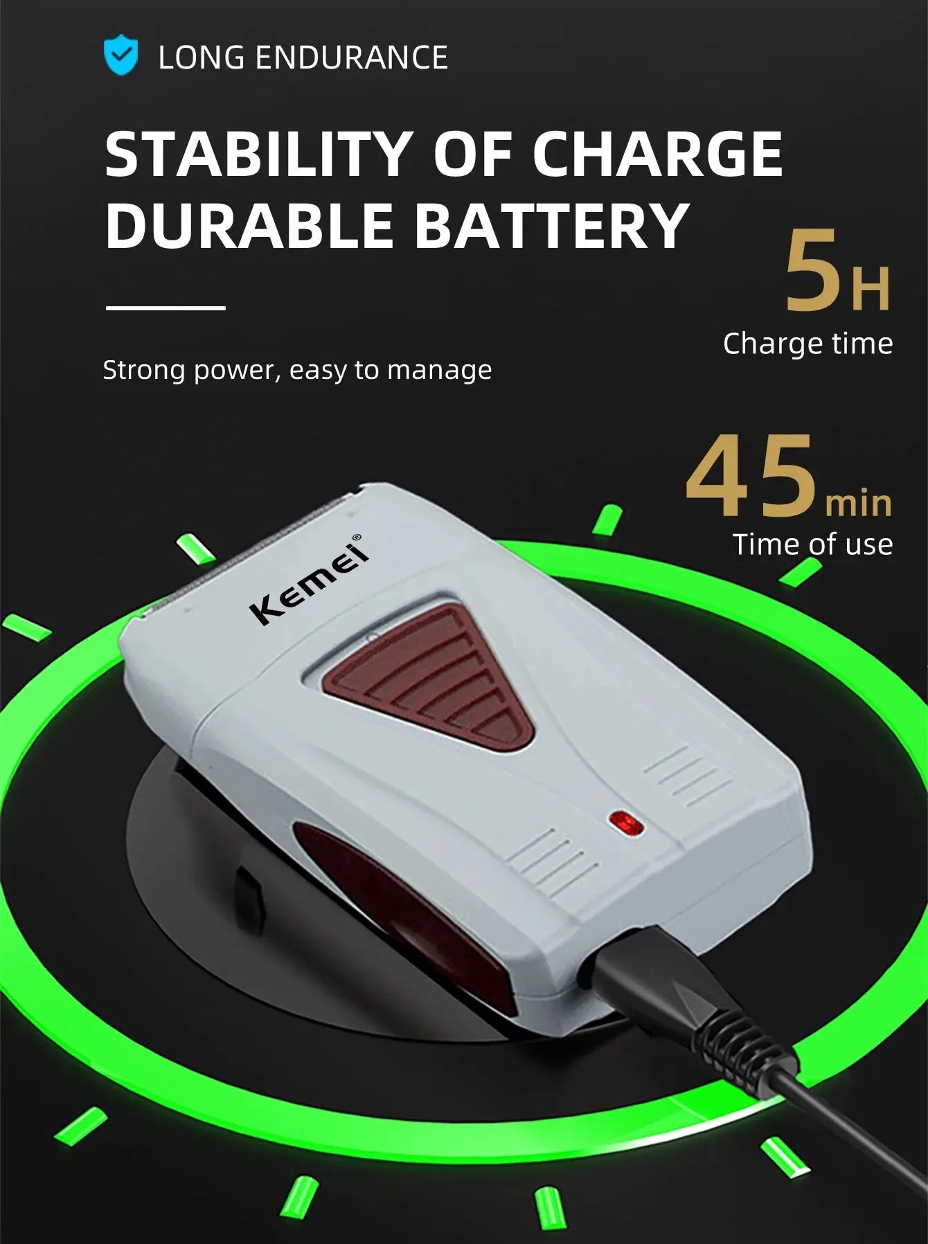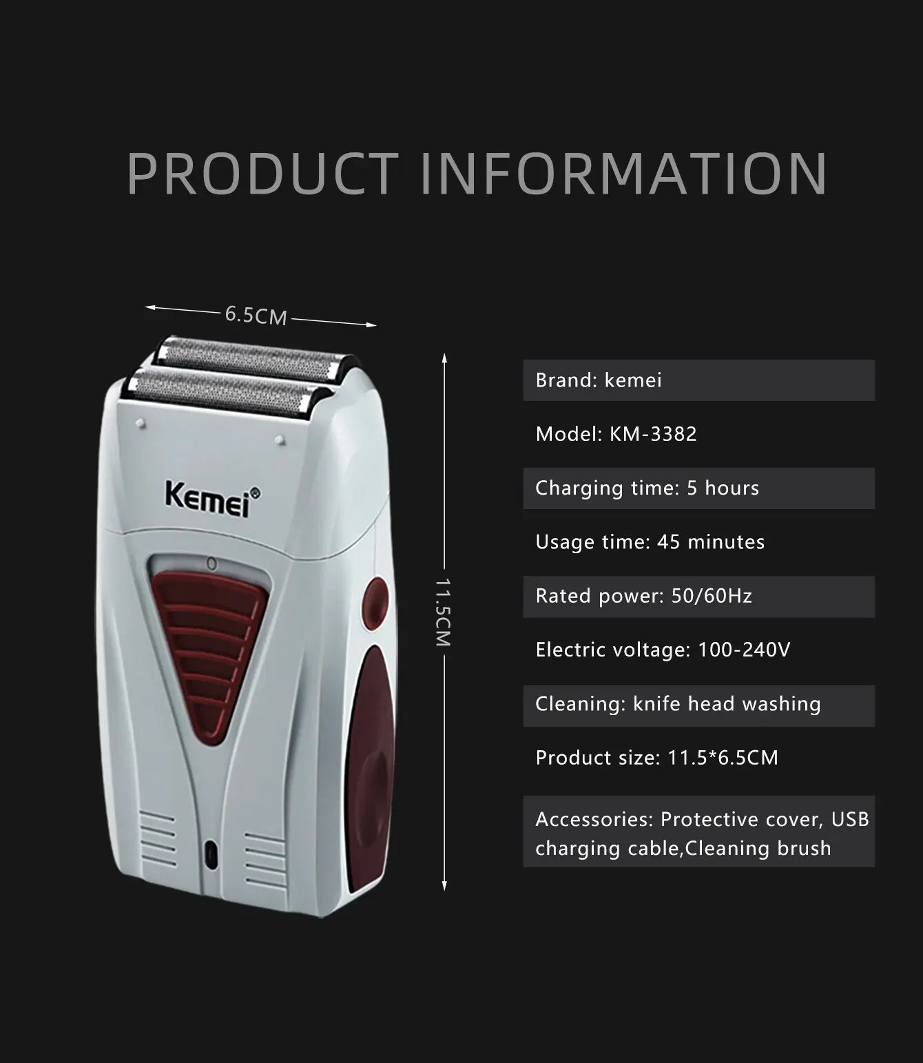 About This Product High-speed 11000 RPM motor for precision shaving and trimming Double foil shaver for a close, smooth shave with reduced irritation Professional-grade electric trimmer ideal for barbers and home use USB rechargeable design for convenient cordless operation Ergonomic grip for comfortable handling and control Durable build for long-lasting performance Suitable for beard, stubble, and hair cutting